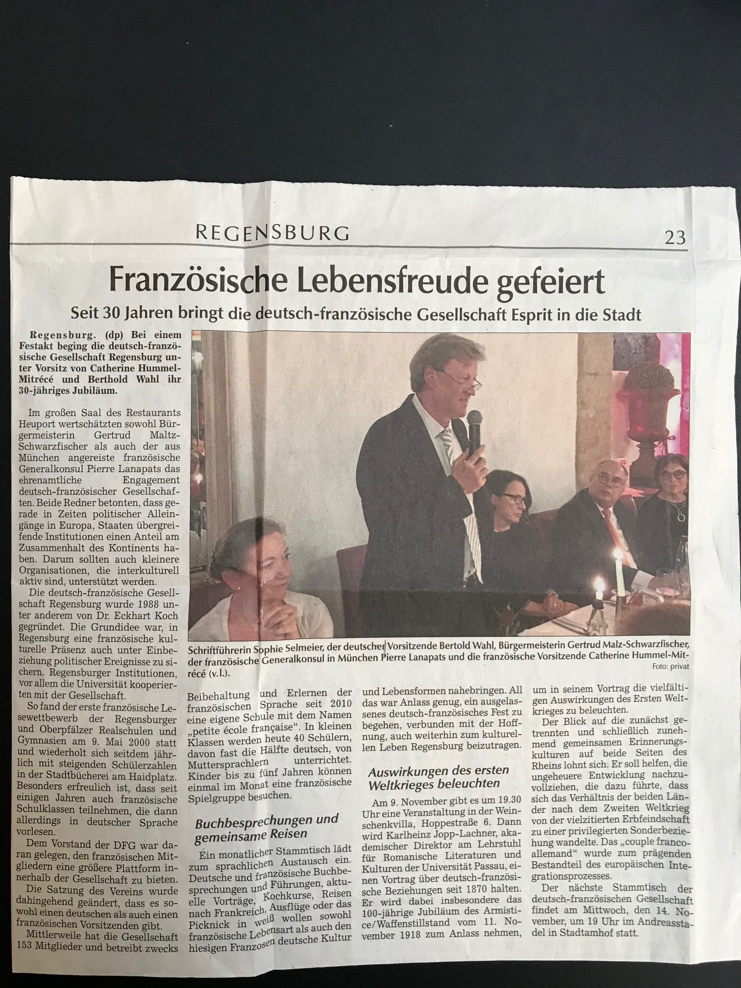 La DFG fête ses 30 ans le 13 oct. 2018 – Article de la « Donaupost », 23 oct. 2018